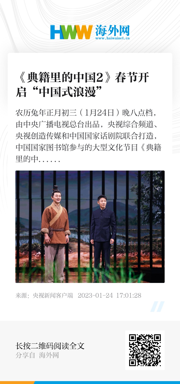 农历兔年正月初三(1月24日)晚八点档,由中央广播电视总台出品,央视综合频道、央视创造传媒和中国国家话剧院联合打造,中国国家图书馆参与的大型文化节目《典籍里的中国》第二季将在央视综合频道(CCTV-1)播出第四期,讲述中国最早诗歌总集《诗经》的传承故事。