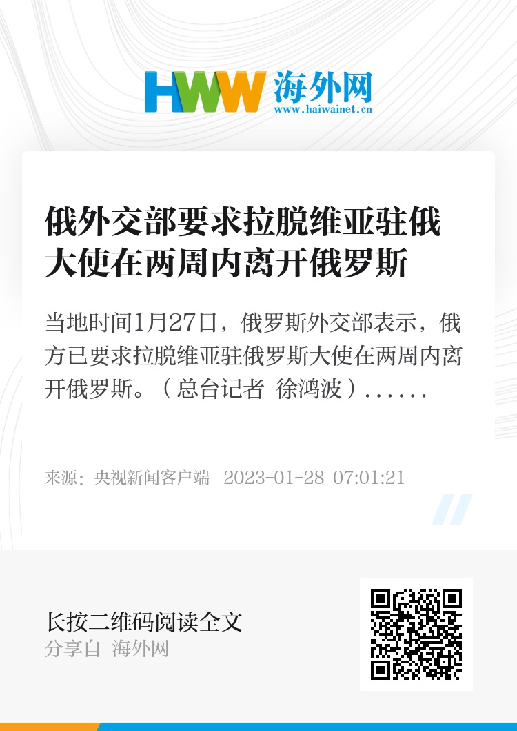 当地时间1月27日,俄罗斯外交部表示,俄方已要求拉脱维亚驻俄罗斯大使在两周内离开俄罗斯。(总台记者 徐鸿波)