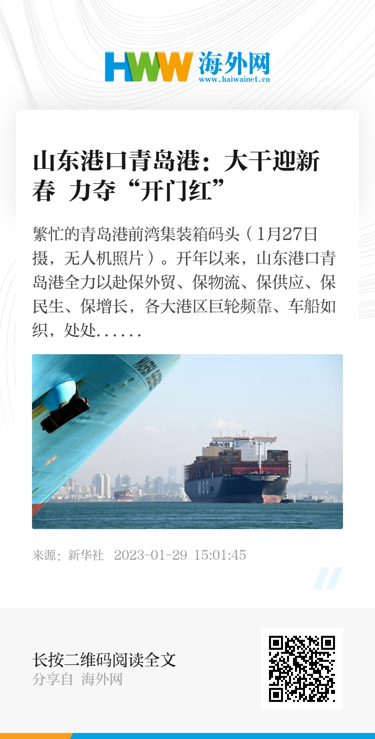 繁忙的青岛港前湾集装箱码头(1月27日摄,无人机照片)。开年以来,山东港口青岛港全力以赴保外贸、保物流、保供应、保民生、保增长,各大港区巨轮频靠、车船如织,处处是繁忙的作业景象。码头职工加班加点抢抓生产,以红火业绩力夺新春“开门红”。新华社记者 李紫恒 摄