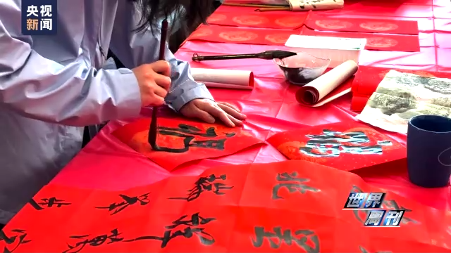纽约帝国大厦连续23年点亮“中国红”。加拿大北温哥华市,当地居民兴致勃勃地学写福字。