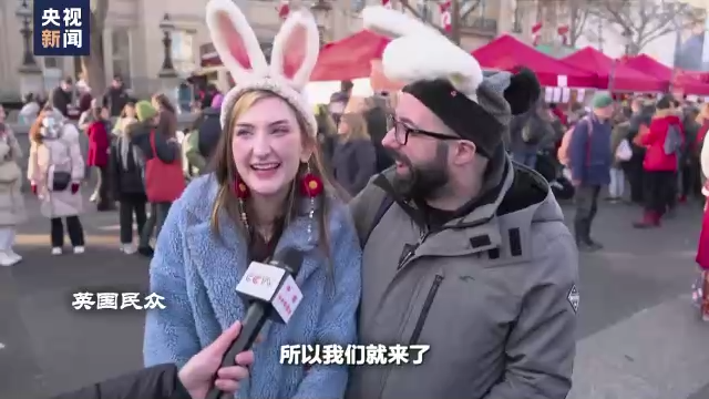 英国民众:我们都是兔年生的,所以我们就来了,我们想跟大家一起庆祝,新年快乐!
