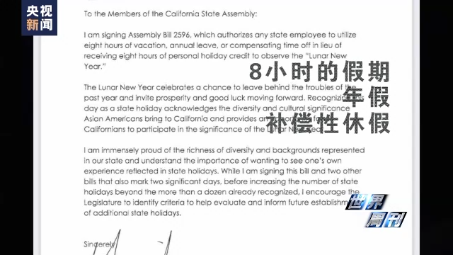 2022年9月29日,美国加州州长纽森签署法案,将中国农历新年定为该州的法定假日。从今年起,加州政府雇员可享有8小时的假期、年假或补偿性休假,以庆祝农历新年。