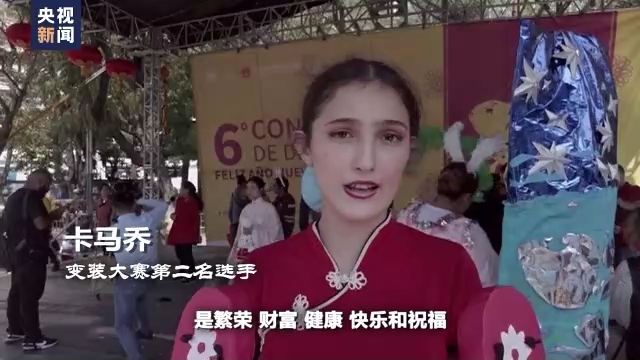 变装大赛第二名选手 卡马乔:这些颜色(红色)的含义是繁荣、财富、健康、快乐和祝福。