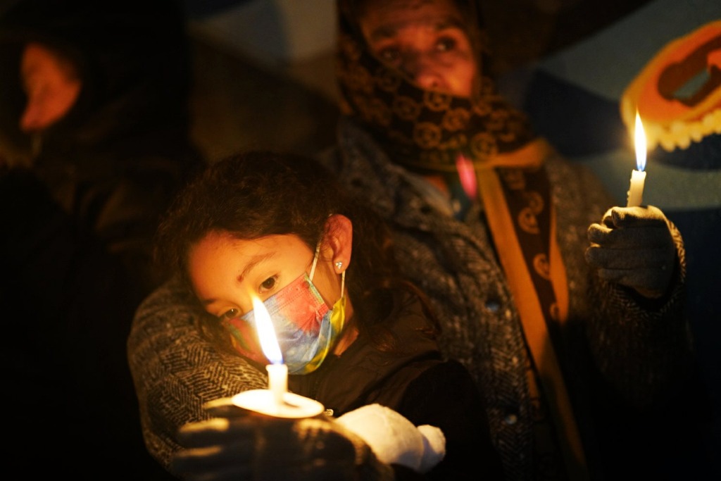 1月27日,人们在美国加利福尼亚州半月湾市举行的守夜活动中哀悼枪击事件遇难者。(新华社记者吴晓凌摄)