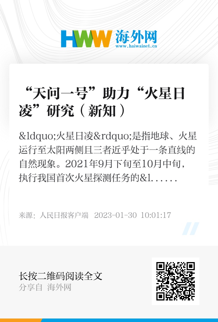 本次观测,还在CME离去时探测到了初生高速太阳风流。业内专家认为,这次中外联合成功进行“火星日凌”研究,得益于“天问一号”“火星快车”探测器射电遥感观测方法的高灵敏度,以及多站联合观测具有的高时间分辨率、高空间分辨率优势。利用这一方法,今后可对原位探测器无法进入的临日空间和光学手段无法识别的小尺度快速变化现象进行观测,有助于研究人员更加细致地研究临日空间环境及其对深空通信的影响。