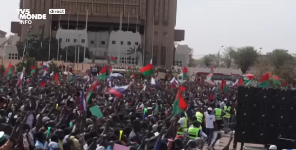 报道称,瓦加杜古市中心的民族广场当天挤满了示威者,他们手举标语牌,上面写着“打倒帝国主义”、“打倒法国对非政策”和“为了布基纳法索的主权前进”等口号。