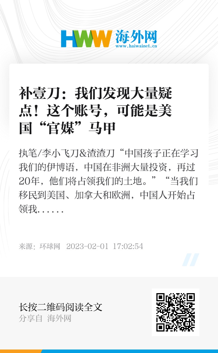 我们有理由怀疑,这个张口闭口大谈非洲人利益的账号,是又一个反华势力的反串号甚至VOA在非洲分支机构的马甲。