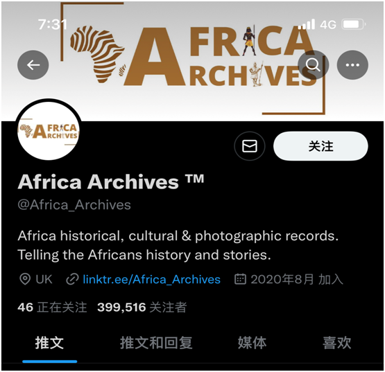 尽管一开始Africa Archives竭力把自己伪装为一个扎根在非洲的账号,但最新的一次查询发现,该账号的定位地点已经跑到英国。