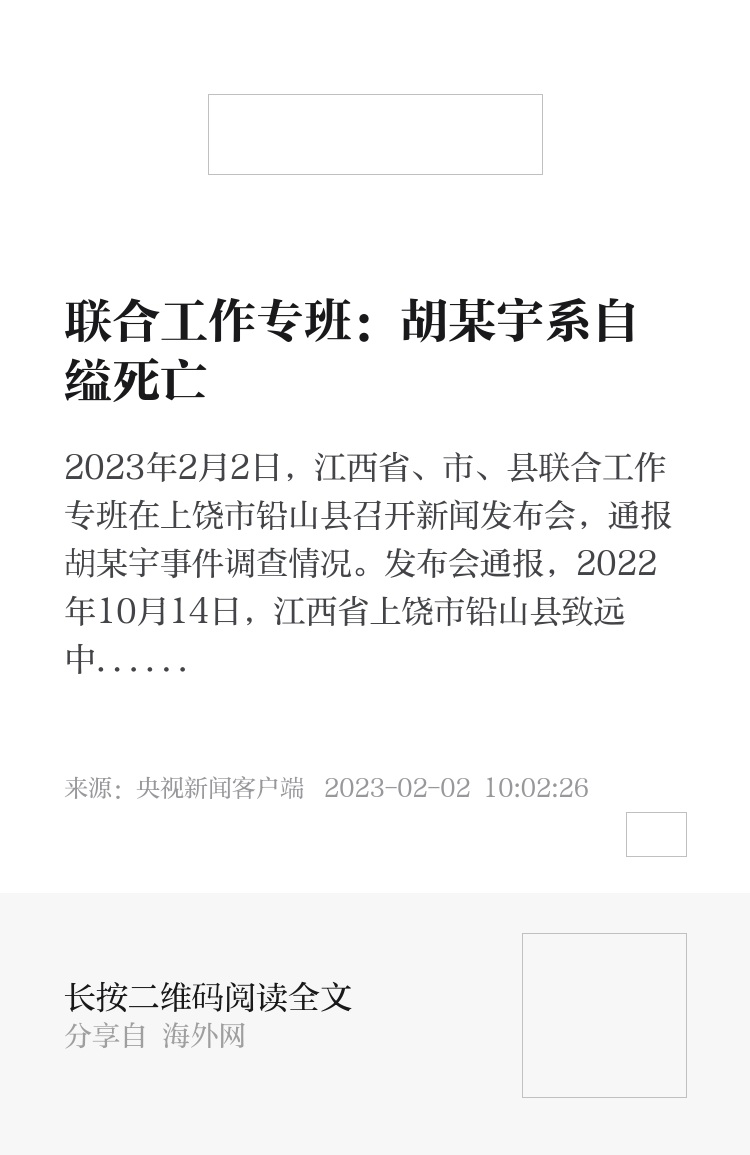 2023年2月2日,江西省、市、县联合工作专班在上饶市铅山县召开新闻发布会,通报胡某宇事件调查情况。