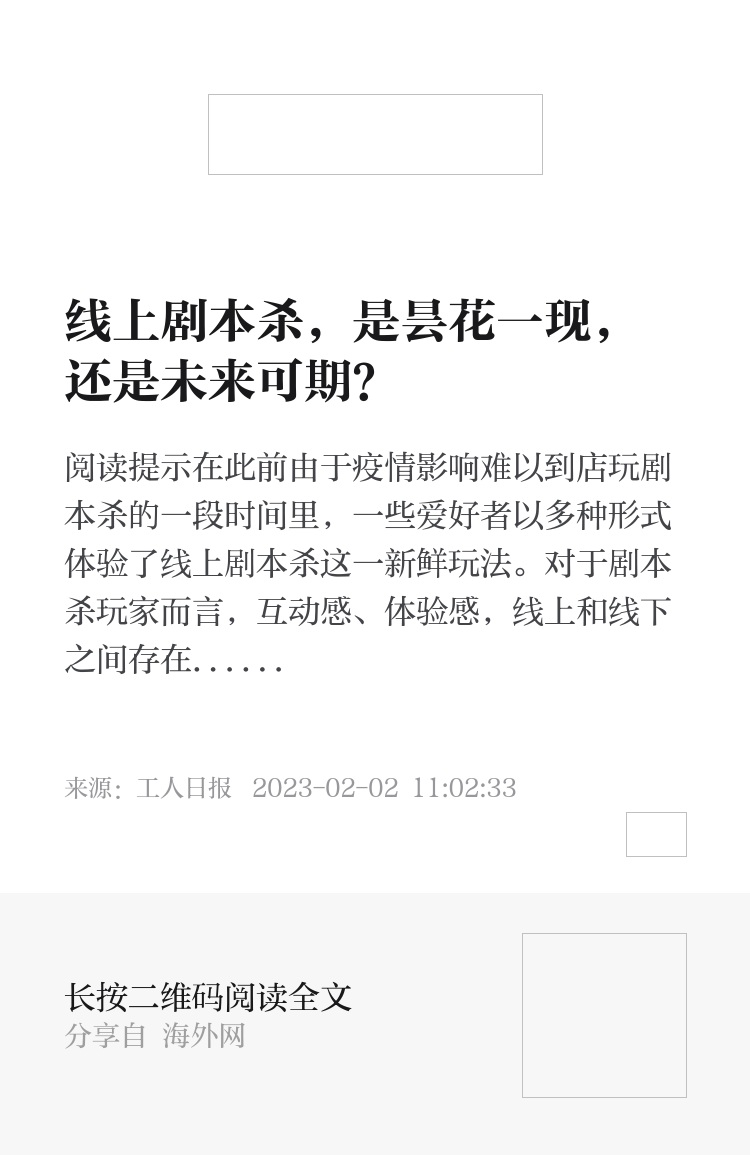 在此前由于疫情影响难以到店玩剧本杀的一段时间里,一些爱好者以多种形式体验了线上剧本杀这一新鲜玩法。对于剧本杀玩家而言,互动感、体验感,线上和线下之间存在明显差异,线上剧本杀的技术机制尚待完善。与此同时,线下剧本杀门店开展线上剧本杀也面临着缺少DM、不易定价等问题,线上剧本杀发展面临困局。业内人士表示,线上剧本杀破局,需要内容和技术同步发力。