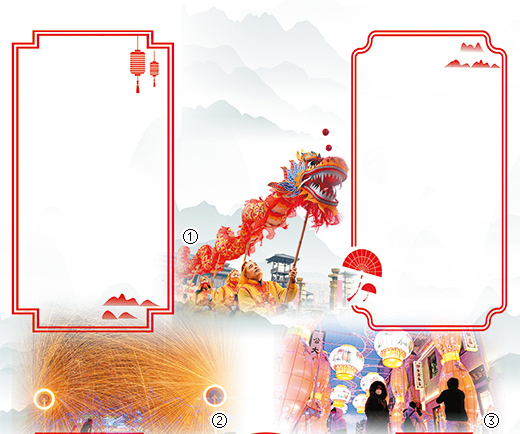 图①:大年初二,山东省郯城县的民俗表演队伍在表演舞龙。