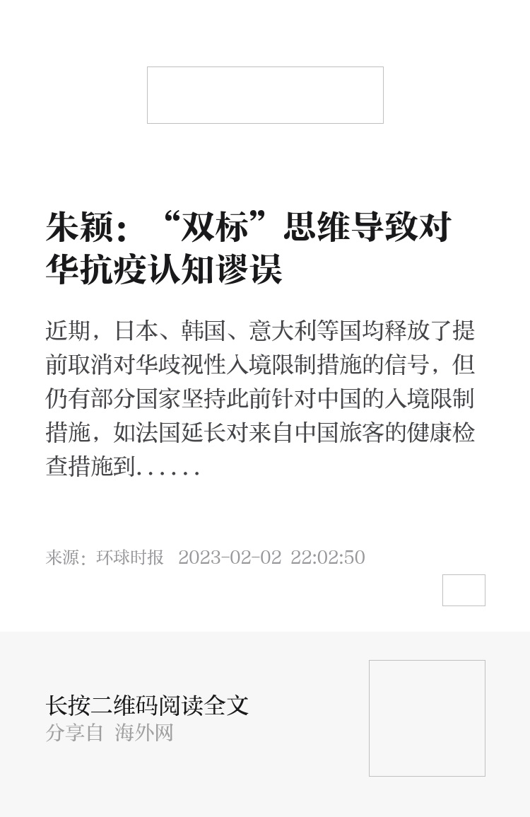 近期,越来越多的国家开始取消对来自中国旅客的入境限制措施,逐渐意识到此前他们的对华抗疫认知陷入了误区。在抗疫大局日益明晰的今天,只有以客观公正的态度认识全球疫情形势,秉持开放、务实和团结的精神携手应对疫情的潜在挑战,才能发挥最大的合力。我们欣然看到这些改变,也期待更多好消息到来,走出孤立、携手抗疫的潮流是不可阻挡的。(作者是西南政法大学白昃研究院美国研究中心主任)