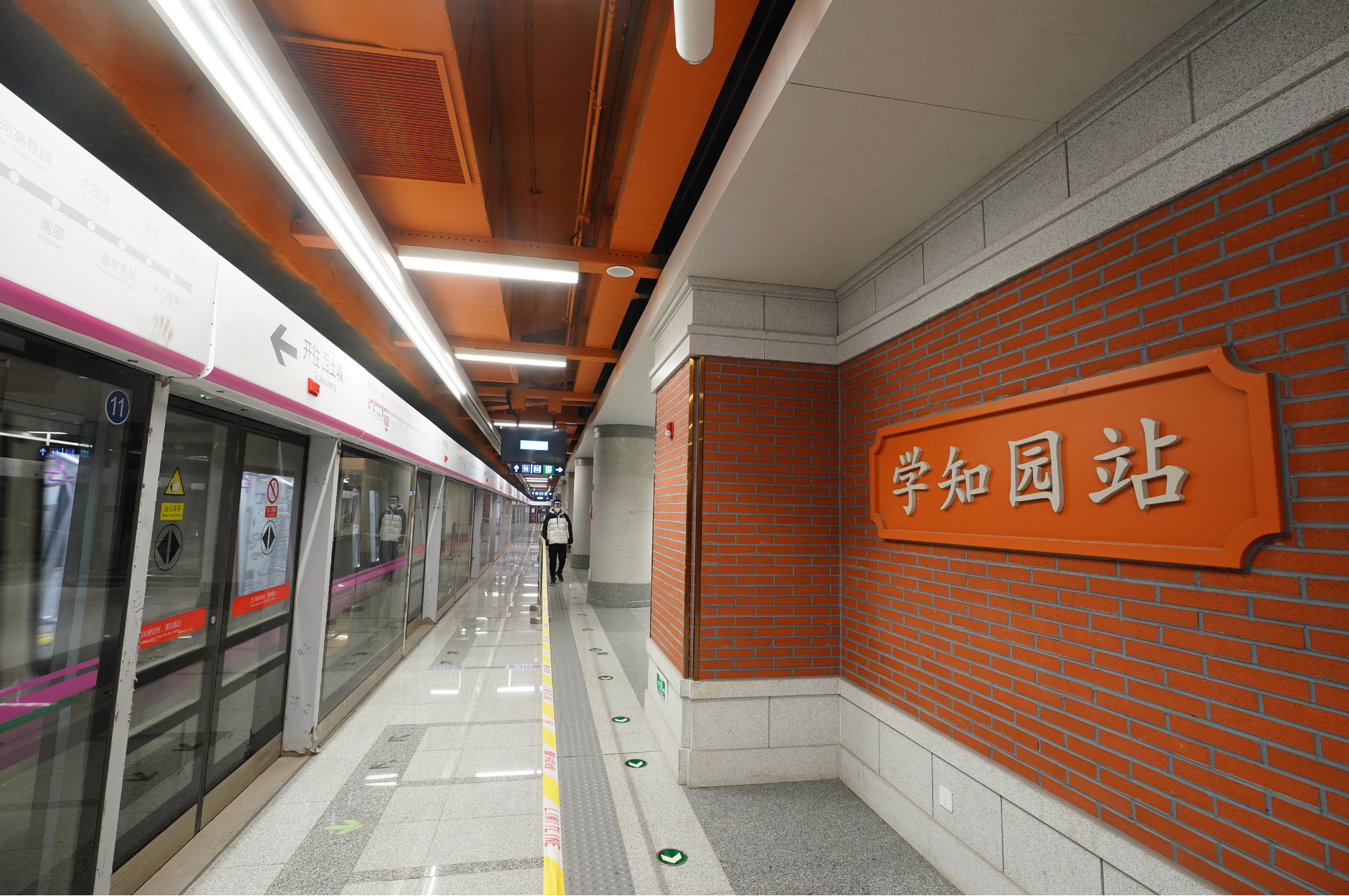 这条连接昌平与中心城区的地铁线从学院路地下经过,沿途汇聚众多国内知名高校,因此,地铁在装修设计上主打“学院风”。走进学知园站,壁画描绘着大学宿舍、实验室、食堂等,带领乘客重温大学时光。乘客还可在昌平线南延各站发现红砖墙、老校门、城墙等充满历史底蕴的元素。