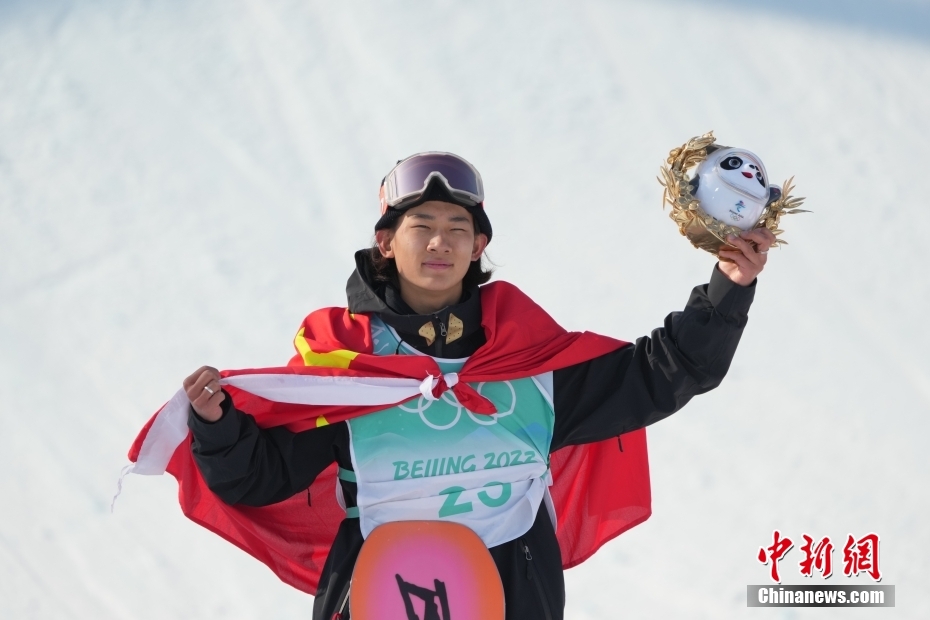 北京2022年冬奥会单板滑雪男子大跳台决赛,中国选手苏翊鸣获得冠军。 中新社记者 毛建军 摄