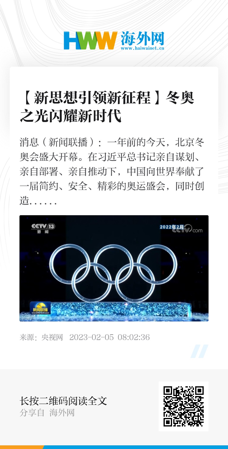 美轮美奂的开闭幕式、荡气回肠的赛场经典、鼓舞世界的五环相聚、精益求精的赛会组织。一年前,中国向世界奉献了一届真正无与伦比的冬奥盛会,北京成为全球首个“双奥之城”,三亿人参与冰雪运动,中国人民同各国人民一道,开启了全球冰雪运动新时代,再一次共享奥林匹克的荣光。