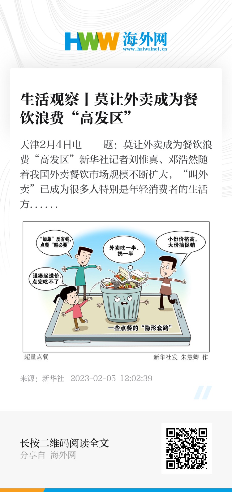 新华社天津2月4日电 题:莫让外卖成为餐饮浪费“高发区”