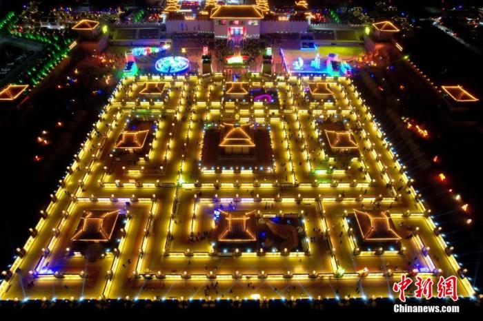 资料图:农历正月十五元宵节,甘肃省张掖市甘州区“九曲黄河灯阵”亮灯,欢庆元宵节。 成学磊 摄