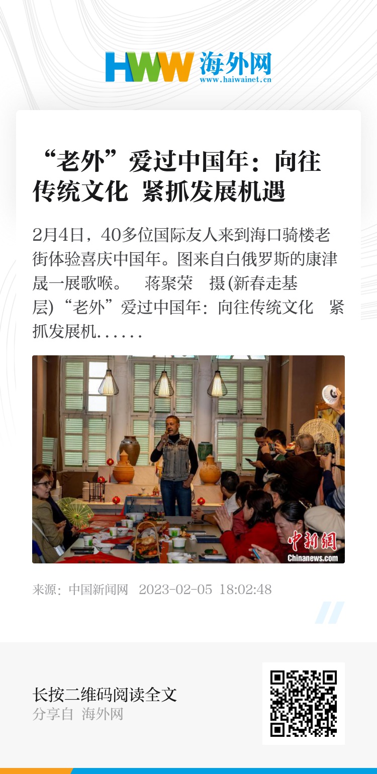 中新网海口2月5日电 题:“老外”爱过中国年:向往传统文化 紧抓发展机遇