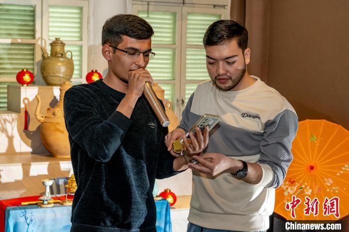 当日活动中,白俄罗斯共和国在海南自贸港文化和信息联络站主任康津晟认真观看茶道表演,还学着弹古筝。