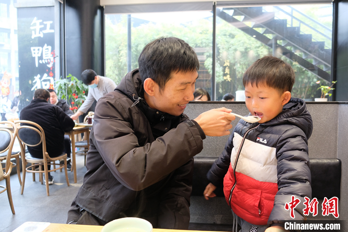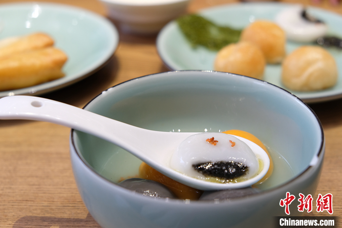 2月5日,游客在缸鸭狗门店品尝汤圆。 中新社记者 林波 摄