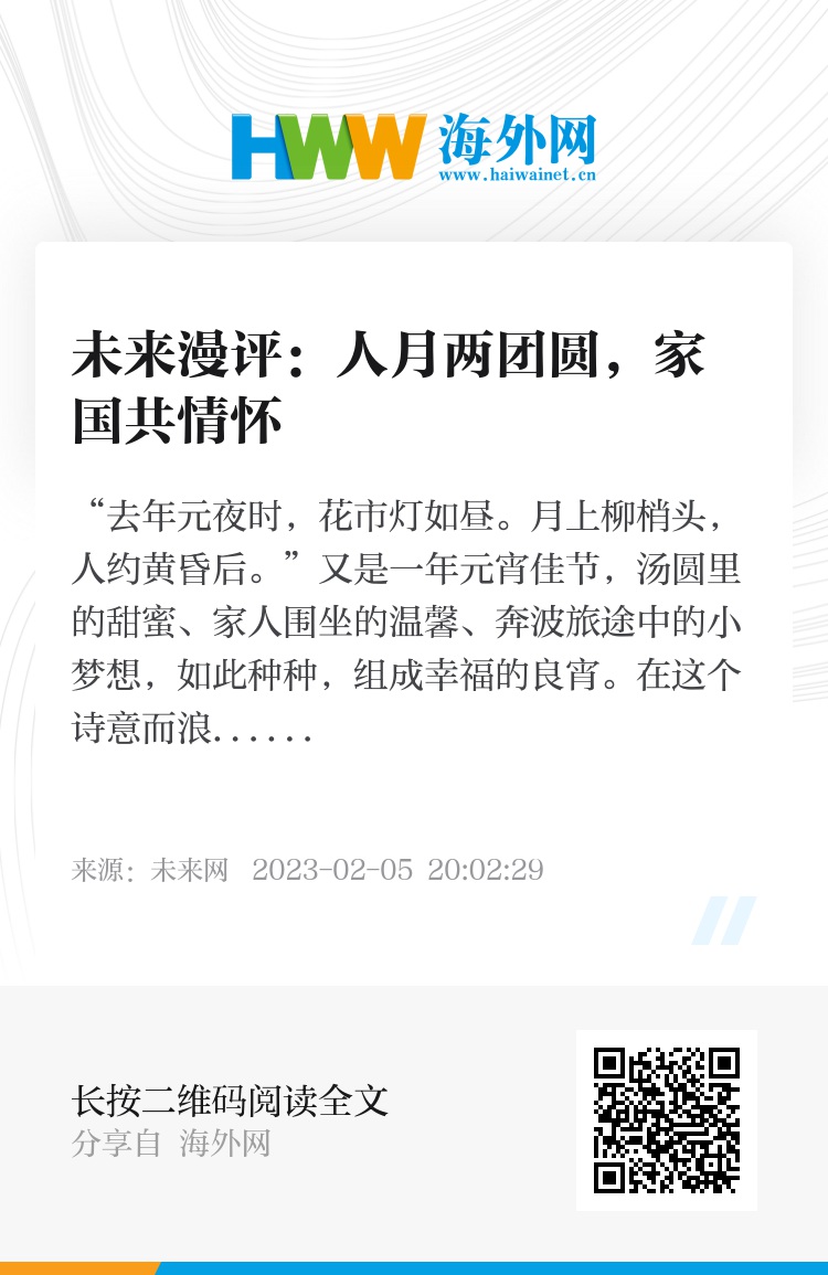 在历史的变迁与传承中,我们读懂了这份家国情怀。让我们带着关于团圆与美满的祝福出发,做有家国情怀的奋斗者——向明天,向未来!(泰轩萍)