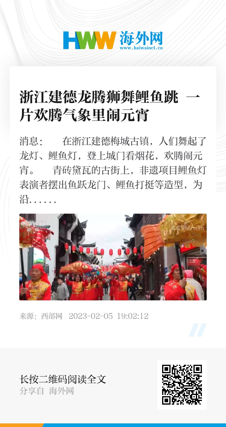 央视网消息:在浙江建德梅城古镇,人们舞起了龙灯、鲤鱼灯,登上城门看烟花,欢腾闹元宵。