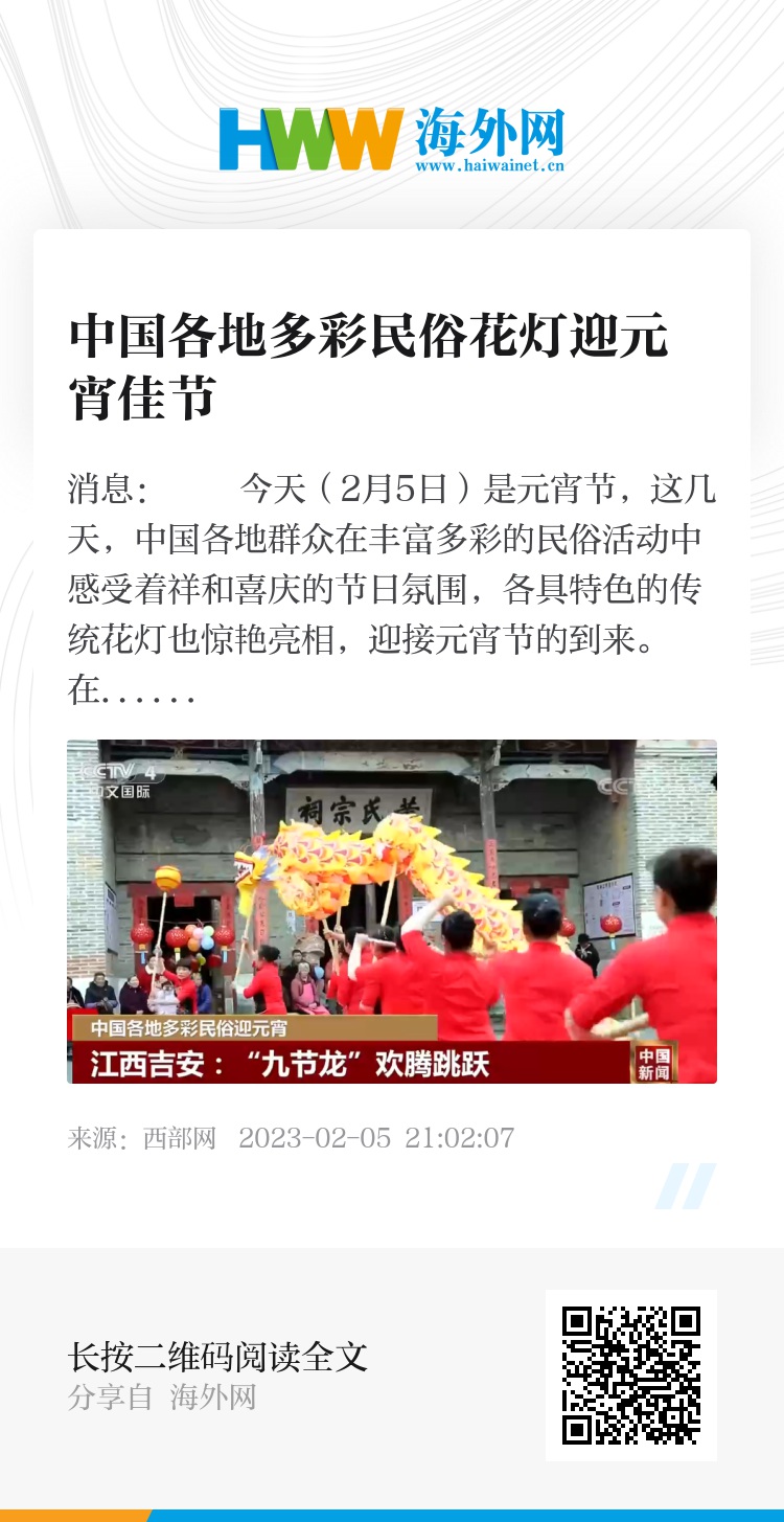 央视网消息:今天(2月5日)是元宵节,这几天,中国各地群众在丰富多彩的民俗活动中感受着祥和喜庆的节日氛围,各具特色的传统花灯也惊艳亮相,迎接元宵节的到来。