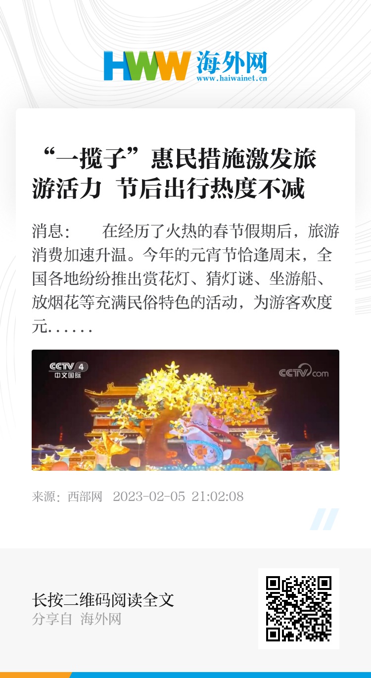 业内人士表示,从元旦到春节再到元宵节,新年伊始民众的旅游热情得到空前释放,对于消费提振起到了重要的信心催化剂作用。在此背景下,旅游业提质发展迎来契机,服务和体验的升级将成为未来留住游客的关键。