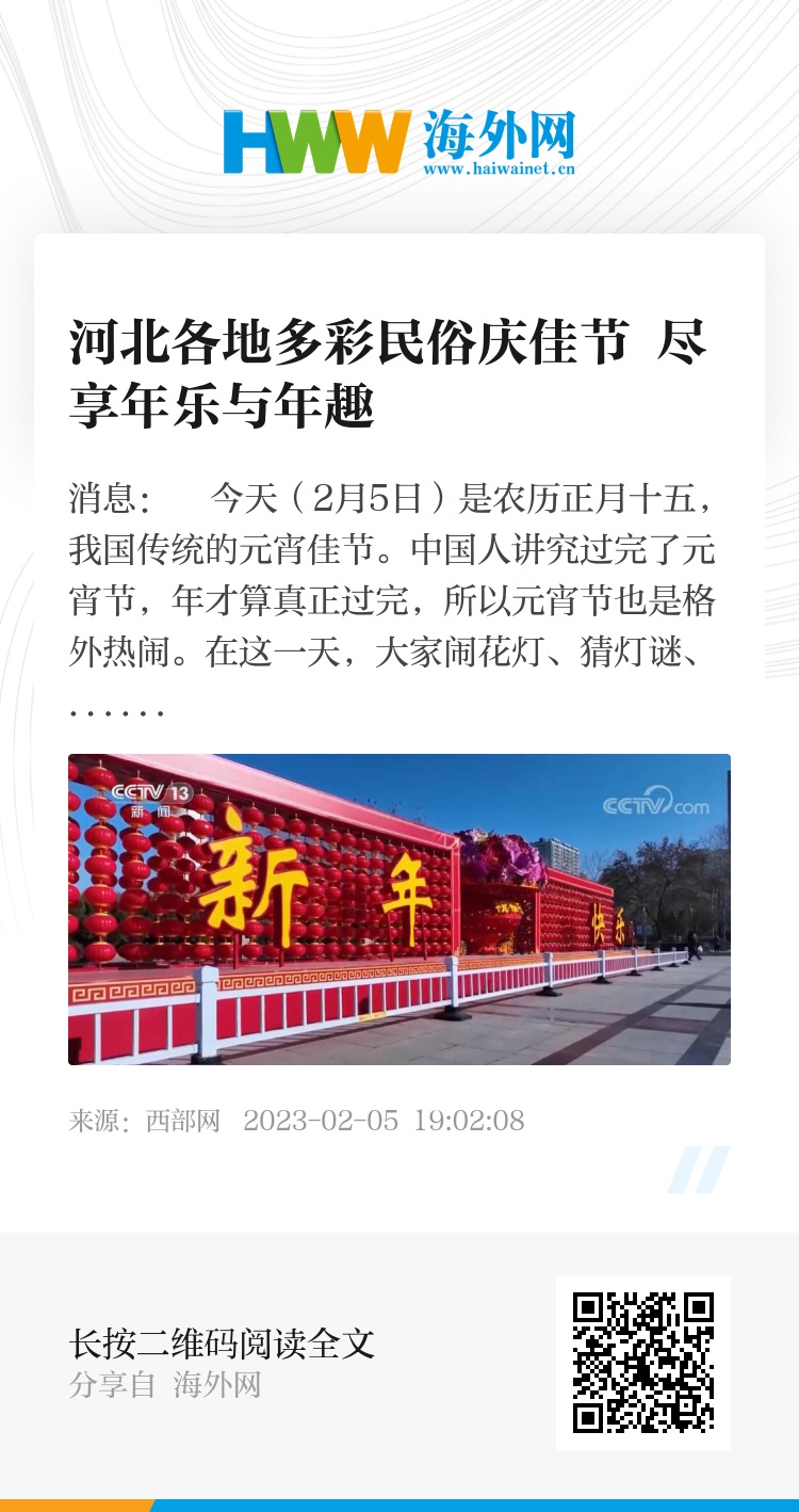 河北省文化和旅游厅副厅长 王荣丽:今年元宵节期间我们组织了丰富多彩、各种各样的文旅活动,在热闹、红火而有序的活动中让群众感受到元宵节特有的气氛,也让更多的年轻人参与进来,把我们自己的民俗文化能够传承下去。