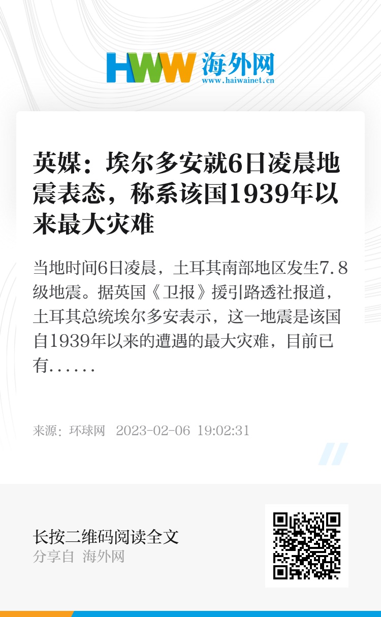 报道称,埃尔多安提到的1939年埃尔津詹地震据称造成了3.3万人死亡。此外,1999年在该国伊兹米特市发生的7.6级地震造成了超1.7万人死亡。