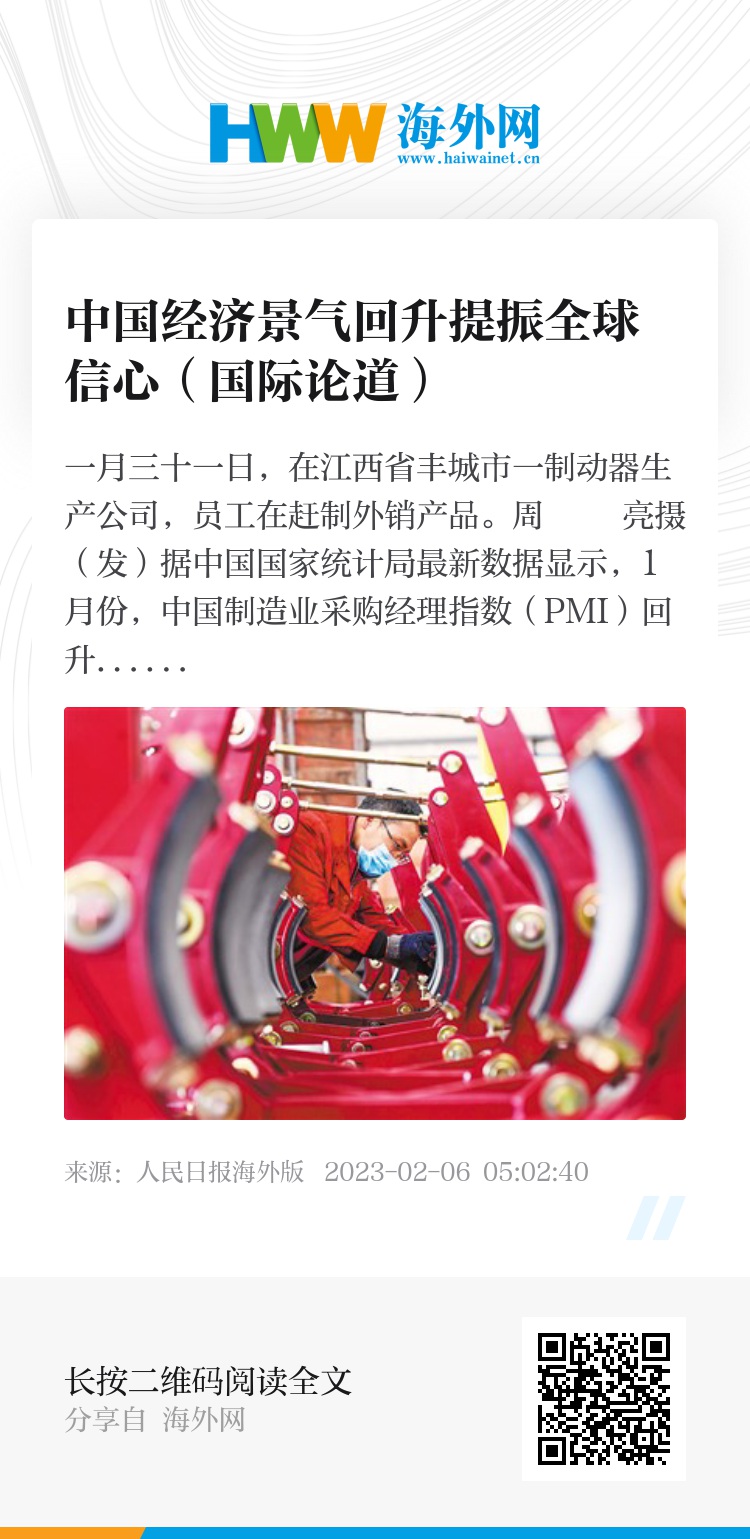 数据显示,1月份,中国新订单指数为50.9%,高技术制造业、装备制造业等重点行业PMI不同程度上升,景气水平均有所改善;非制造业商务活动指数为54.4%,重返扩张区间。国内旅游出游3.08亿人次,实现国内旅游收入3758.43亿元,同比增长30%;春节档电影票房突破67亿元,取得中国电影史上春节档第二的亮眼成绩;全国揽投快递包裹量超7亿件,较2019年同期大幅增长……中国多个行业迎来新年“开门红”,中国经济积极的增长势头引来全球关注。