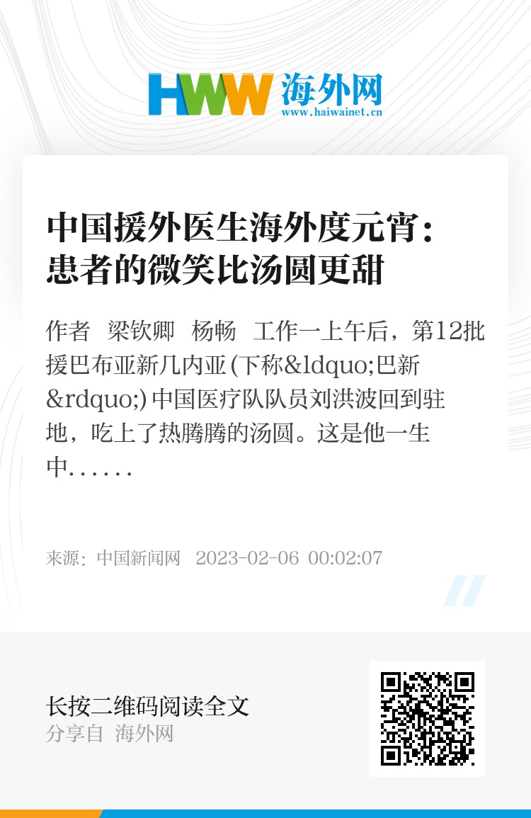 独在异乡为异客,每逢佳节倍思亲。每个热腾腾的汤圆,既是对祖国和亲人的思念,也是对美好未来的期待。饭后,中国援外医生们又穿上工作服,走进了医院。