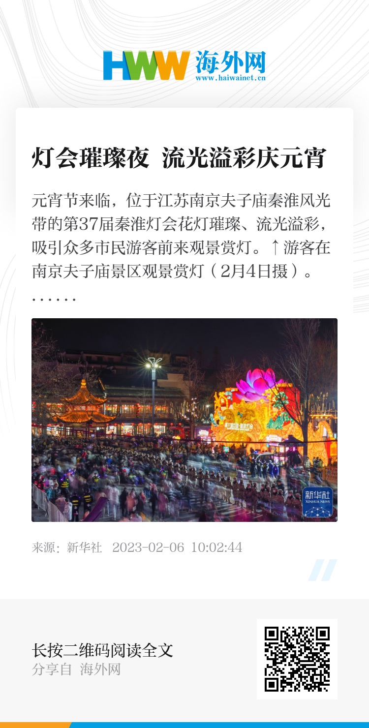 元宵节来临,位于江苏南京夫子庙秦淮风光带的第37届秦淮灯会花灯璀璨、流光溢彩,吸引众多市民游客前来观景赏灯。