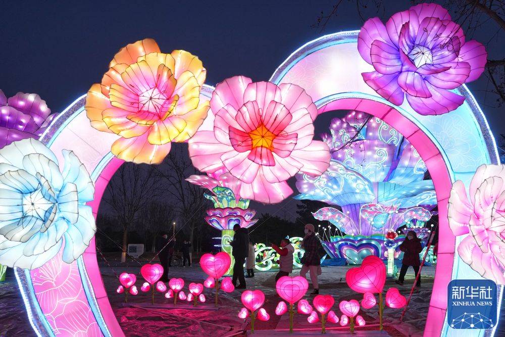 当日是元宵节,游客来到位于北京市丰台区的南宫五洲植物乐园欣赏花灯,欢度佳节。