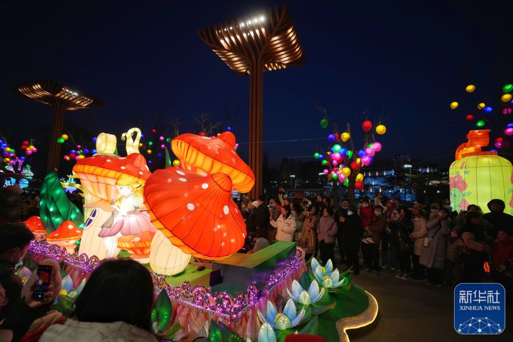 当日是元宵佳节,在北京世园公园,北京世园花灯艺术节的170组、3900盏特色花灯,组成3千米花灯观赏长廊及11个特色观赏区,吸引了众多游客前来赏花灯,度佳节。