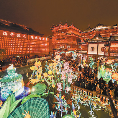 今年的豫园灯会主题聚焦《山海经》,以灯彩艺术的形式呈现“山海奇豫记”的奇幻世界,也带来暖心灯火的情感抚慰。