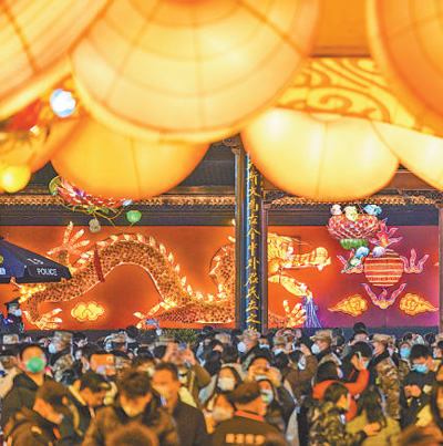 值得一提的是,南京夫子庙东牌楼灯市,也在今年正月重新开放,吸引了60多名秦淮灯彩艺人集中亮相。在这个元宵节,市民游客在畅游灯河的同时,还能挑上一盏花灯回家。据统计,截至2月2日,灯市已销售了花灯超过10万盏。