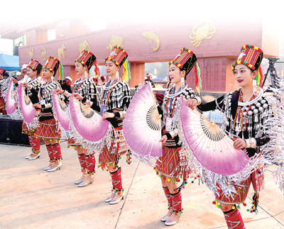 云南德宏傣族景颇族自治州陇川县,当地群众起舞庆祝节日。梁志强摄(人民视觉)