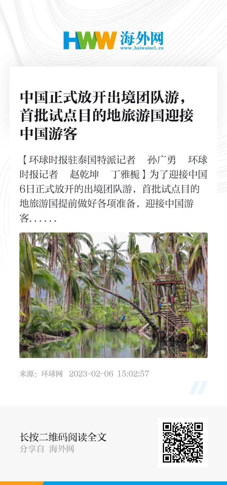 【环球时报驻泰国特派记者 孙广勇 环球时报记者 赵乾坤 丁雅栀】为了迎接中国6日正式放开的出境团队游,首批试点目的地旅游国提前做好各项准备,迎接中国游客。
