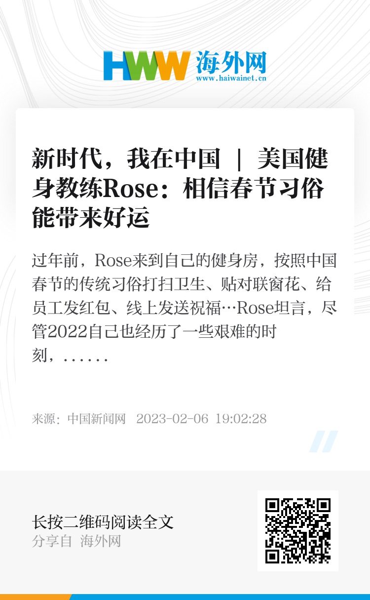 过年前,Rose来到自己的健身房,按照中国春节的传统习俗打扫卫生、贴对联窗花、给员工发红包、线上发送祝福…