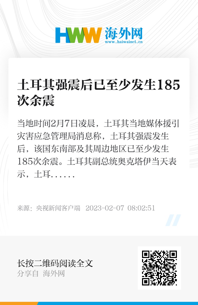 当地时间2月7日凌晨,土耳其当地媒体援引灾害应急管理局消息称,土耳其强震发生后,该国东南部及其周边地区已至少发生185次余震。