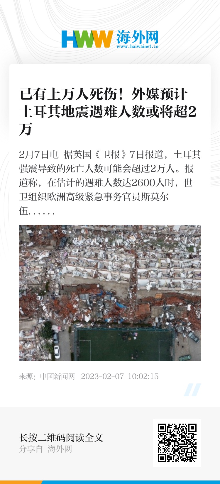 中新网2月7日电 据英国《卫报》7日报道,土耳其强震导致的死亡人数可能会超过2万人。