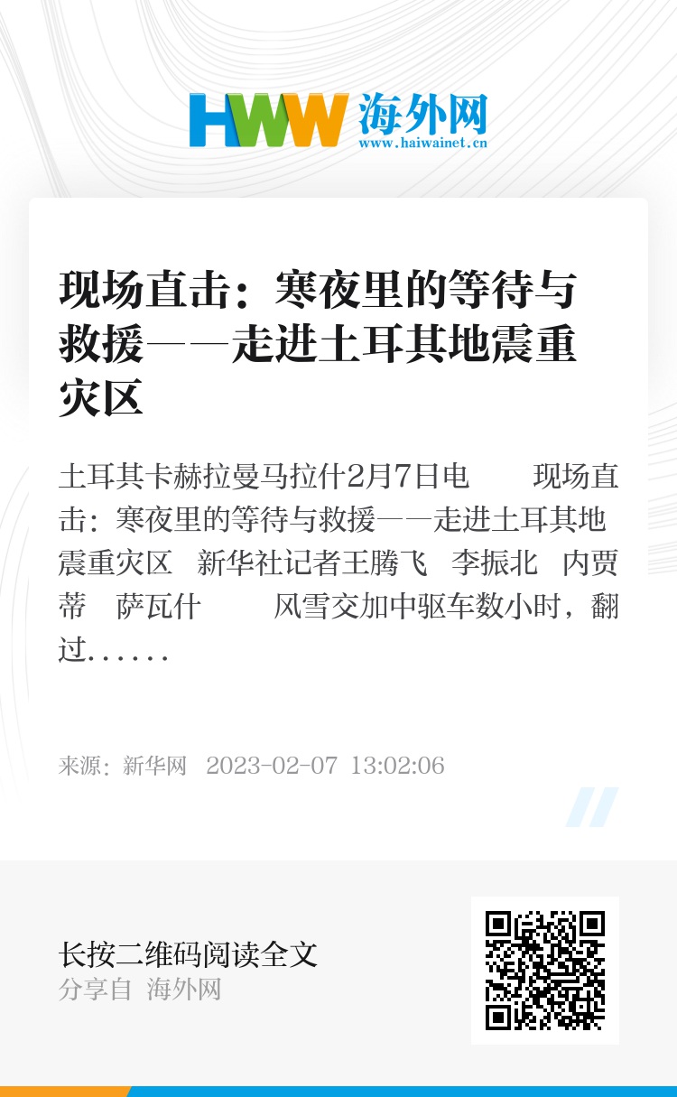 新华社土耳其卡赫拉曼马拉什2月7日电 现场直击:寒夜里的等待与救援――走进土耳其地震重灾区