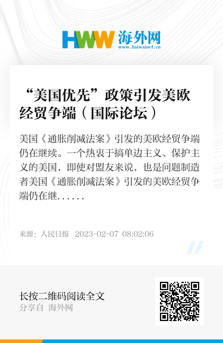 美国《通胀削减法案》引发的美欧经贸争端仍在继续。一个热衷于搞单边主义、保护主义的美国,即使对盟友来说,也是问题制造者