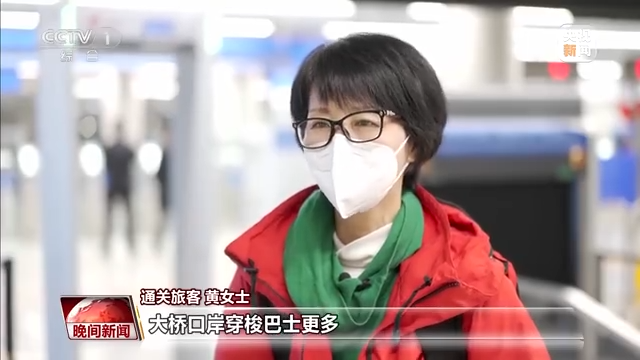 通关旅客 黄女士:全面恢复通关以后,大桥口岸穿梭巴士更多,而且还可以线下购票、随时到窗口都可以买,我们从香港往返探亲、工作更方便了。