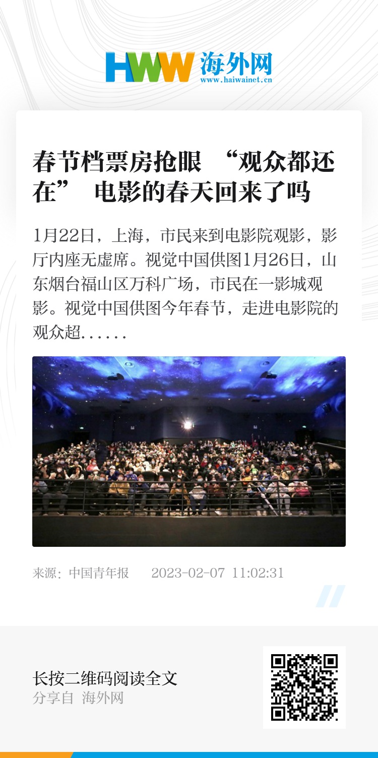 大年初一刘振飞去看《流浪地球2》的时候遇到了一对父子,父亲很是惊讶地问道:“为什么这么多人?”孩子说:“大年初一看电影特别火爆,如果咱不是提前预订,都买不到票。”那一刻,刘振飞感受到了藏在数字背后的真实能量,“影院正在以强劲的生命力复苏着”。