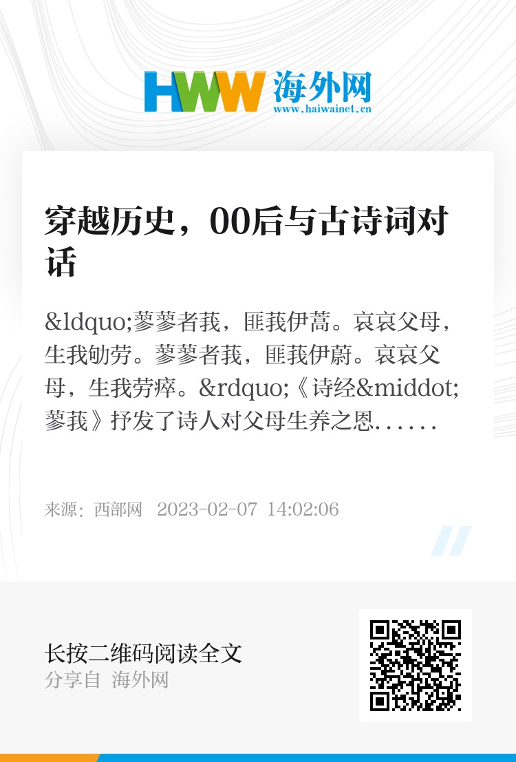 “每一首表达家国情怀的古诗词都非常的纯粹,我们与诗人共情,更加生动地体会到爱国情怀是一种怎样深沉的情感。”《中国国宝大会》全国四强选手鲁韦彤被网友称为“国学”种草机,从诗词类竞赛节目,到身着汉服讲述“国学”的短视频博主,她讲起古诗词来有趣又有料。“盘点《诗经》中的小透明诗篇”“大唐诗人的‘B面’人生”“宋话本小说:揭秘大宋‘都市传说’”……这些极具“非主流”风格的视频主题被鲁韦彤称作“碰撞”,在她看来,要想真正扩大古诗词的影响力,新媒体是必不可少的途径,“每一位爱好者都带着古诗词一点点‘破圈’,就会带来源源不断的生命力”。