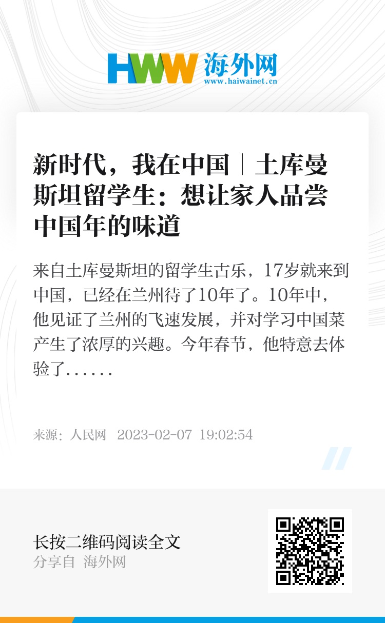 来自土库曼斯坦的留学生古乐,17岁就来到中国,已经在兰州待了10年了。10年中,他见证了兰州的飞速发展,并对学习中国菜产生了浓厚的兴趣。今年春节,他特意去体验了制作兔子馍馍,领悟了中国美食的美好寓意。古乐说如果自己回国了,也会在土库曼斯坦过春节,让家人们也能品尝到中国人过年的味道。