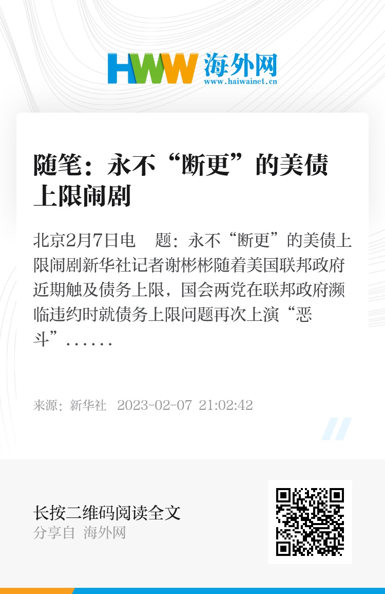 新华社北京2月7日电 题:永不“断更”的美债上限闹剧