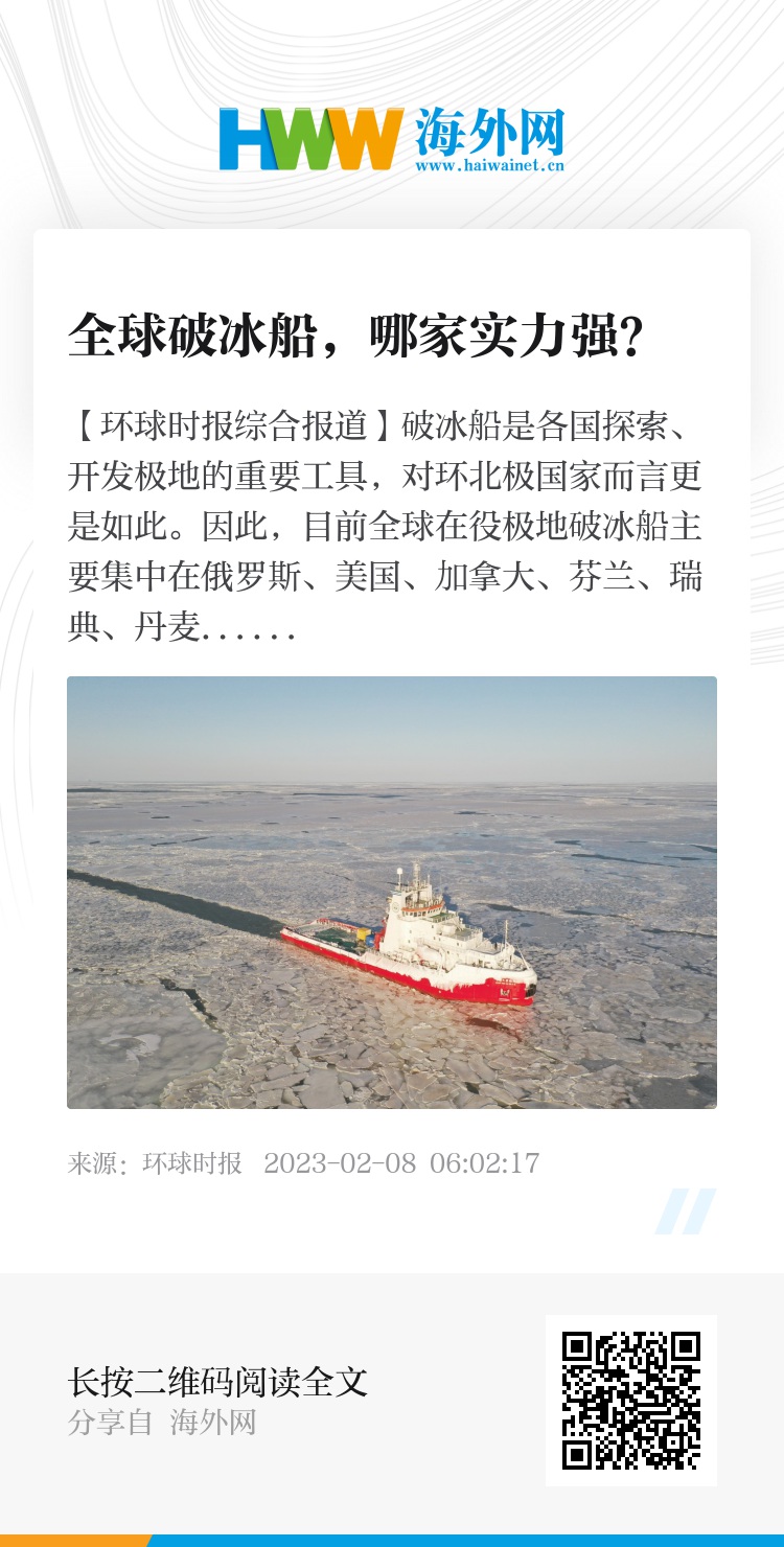 【环球时报综合报道】破冰船是各国探索、开发极地的重要工具,对环北极国家而言更是如此。因此,目前全球在役极地破冰船主要集中在俄罗斯、美国、加拿大、芬兰、瑞典、丹麦等国家。其中,俄罗斯是全球拥有破冰船数量最多、技术最先进、极地作业能力最强的国家。